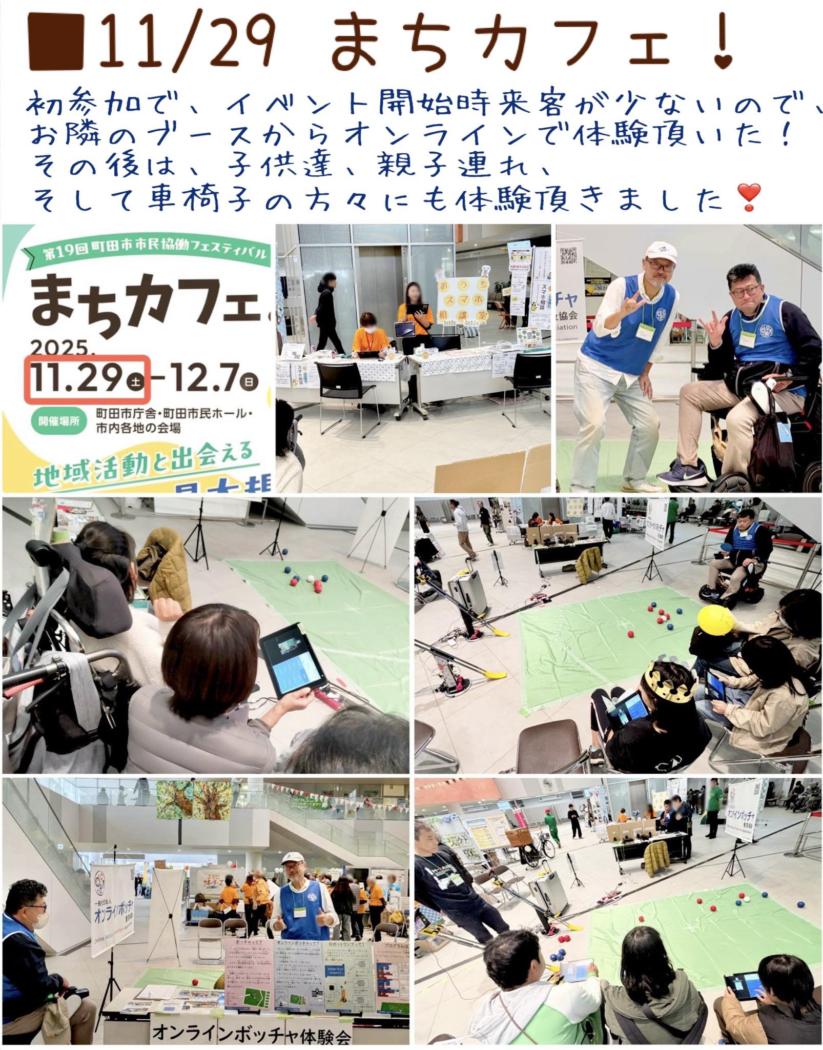 11/18 ごえん楽市2023 いつもは、子供達が多いのですが 今回は幅広い年代の皆様に体験頂けました。 オンラインボッチャは、体力は不要です。 好奇心と、負けん気wが大事です。 ![]() 2023年度かわさき市民公益活動助成金事業 |