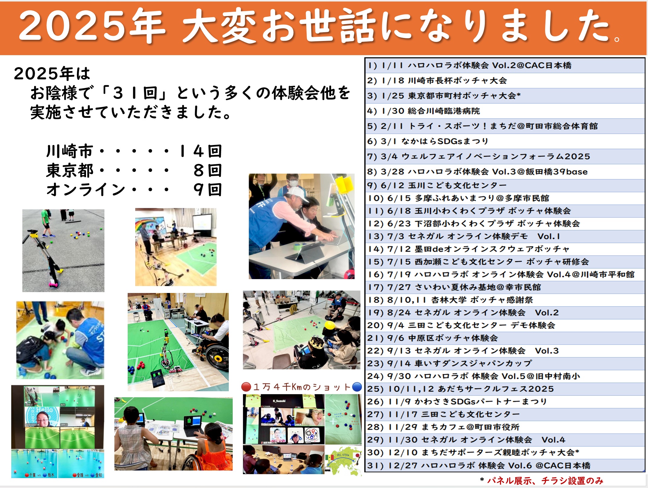 ■3/4 ウェルフェアイノベーションフォーラム2025 オンラインボッチャにピッタリなテーマ「インクルーシブ」「テクノロジー」のイベントで体験会でした! 皆さんに大変興味を持って頂け、来年度は楽しい事が起きそうな…予感 ![]() 2024年度かわさき市民公益活動助成金事業 |